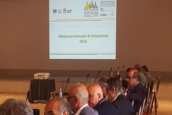 "La riunione del Comitato di Sorveglianza odierna è stato un momento importante, nel corso del costante confronto e verifica che la Regione Puglia, insieme al partenariato socio economico, instaura con l'Unione Europea e il Ministero delle Politiche agricole. Le attività svolte sino ad oggi, i bandi delle misure attivate, l'avvio dell'operatività di un portale telematico, garanzia di massima trasparenza per i beneficiari, danno contezza di un Programma di Sviluppo Rurale vivo. Un grande impegno, che può divenire ancora più rispondente alle esigenze del tessuto economico e sociale pugliese e a una strategia di spesa che coniughi efficacia ed efficienza". Così l'assessore regionale alle Risorse agroalimentari della Regione Puglia, Leonardo di Gioia, a margine della seduta del Comitato di sorveglianza del Programma di Sviluppo Rurale della Puglia 2014-2020, organo di consultazione e vigilanza sulla attuazione della strategia di sviluppo e dei progressi conseguiti, con una dotazione finanziaria complessiva di 1 miliardo e 600 milioni di euro in favore del sistema agricolo e rurale.