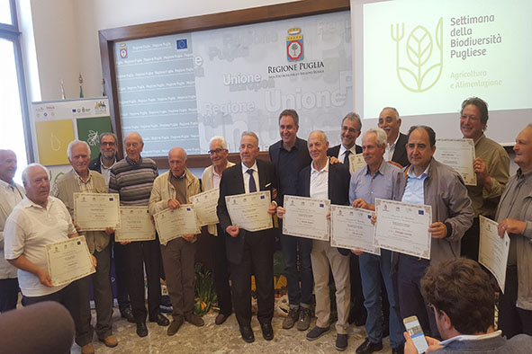 Al termine della conferenza stampa l'Assessore di Gioia ha premiato 18 biopatriarchi cui è stato riconosciuto il merito di aver conservato e protetto specie vegetali in via d'estinzione a tutela della biodiversità pugliese.