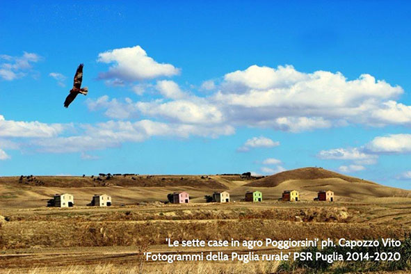 'Le sette case in agro di Poggiorsini: un quadretto quasi naif, cristallizzato nella propria dimensione di altri tempi, che mantiene il tempo che scorre nelle ali spiegate del falco grillaio'
